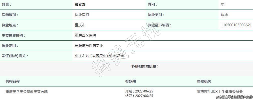 重慶美侖美奐醫(yī)療美容執(zhí)業(yè)醫(yī)師 -
