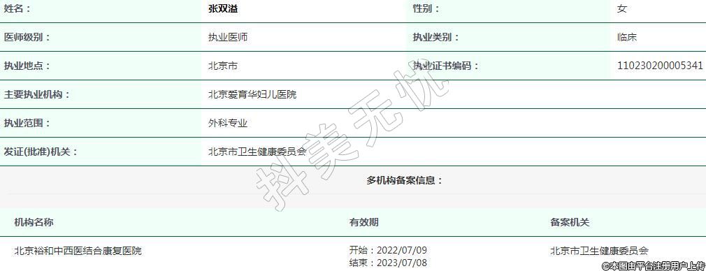 北京愛(ài)育華婦兒醫(yī)院醫(yī)療美容執(zhí)業(yè)醫(yī)生