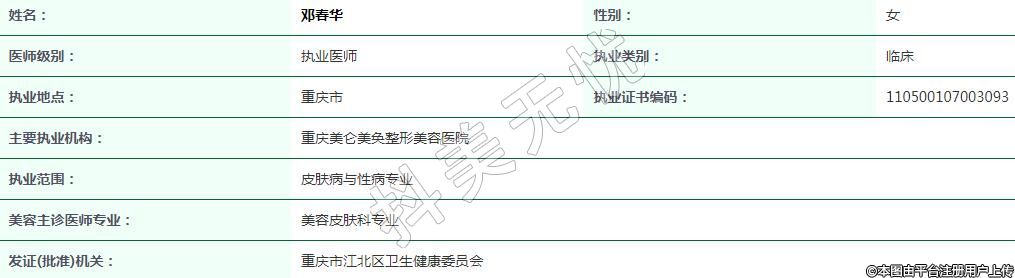 重慶美侖美奐醫(yī)療美容執(zhí)業(yè)醫(yī)師