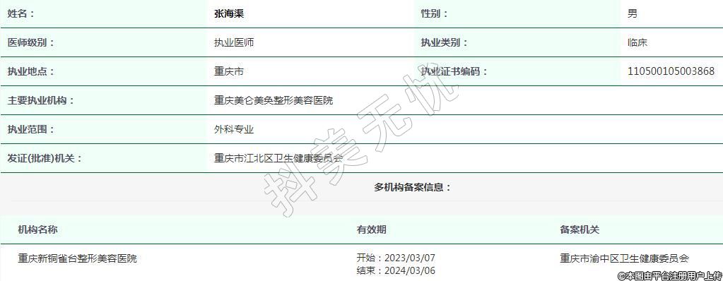 主要執(zhí)業(yè)機(jī)構(gòu):重慶美侖美奐整形美容醫(yī)院
