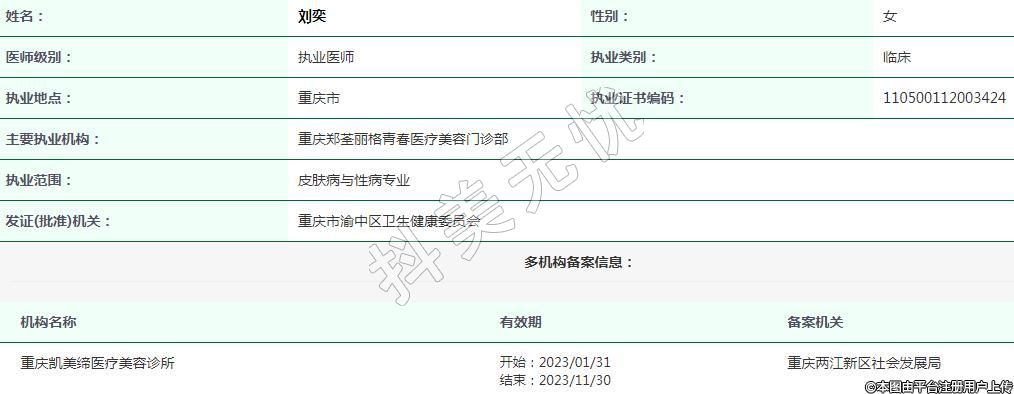 重慶凱美締醫(yī)療美容執(zhí)業(yè)醫(yī)師 -