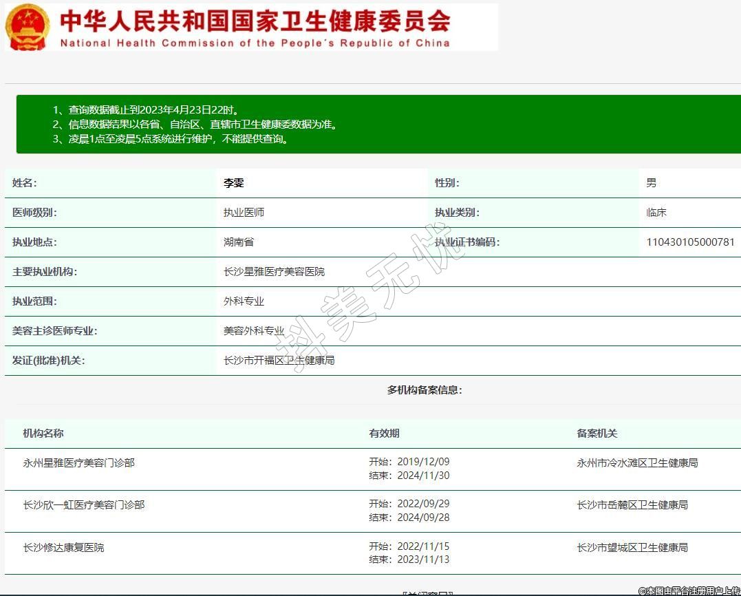 主要執(zhí)業(yè)機構:長沙星雅醫(yī)療美容醫(yī)院