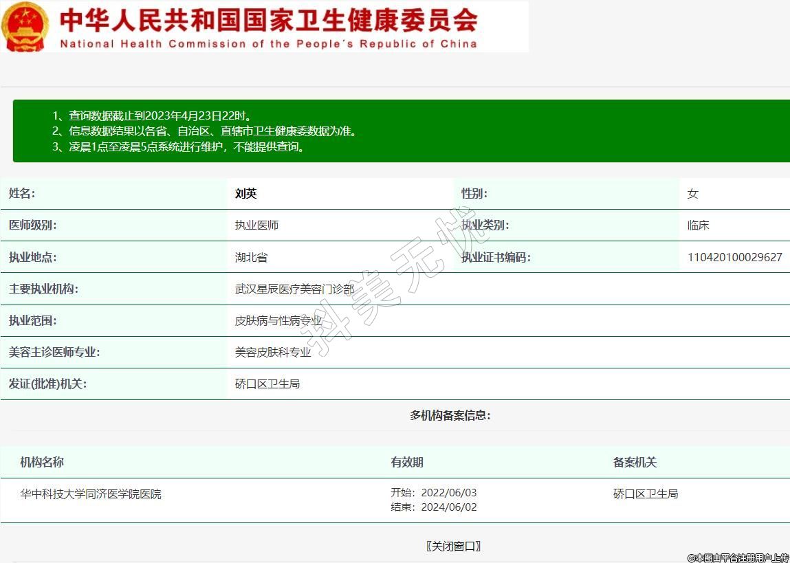 主要執(zhí)業(yè)機(jī)構(gòu):武漢星辰醫(yī)療美容門診部
