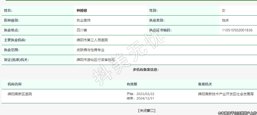 執(zhí)業(yè)范圍:皮膚病與性病專業(yè)