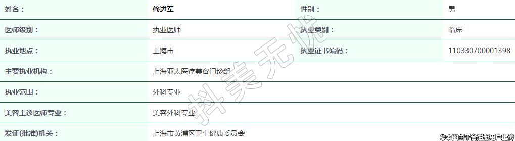 上海亞太醫(yī)療美容執(zhí)業(yè)醫(yī)師