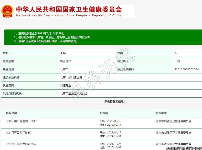 主要執(zhí)業(yè)機構(gòu):北京大學(xué)口腔醫(yī)院