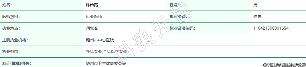 執(zhí)業(yè)范圍:外科專業(yè);全科醫(yī)學(xué)專業(yè)