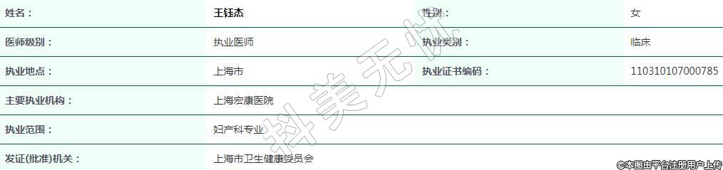 上海宏康醫(yī)院醫(yī)療美容執(zhí)業(yè)醫(yī)師