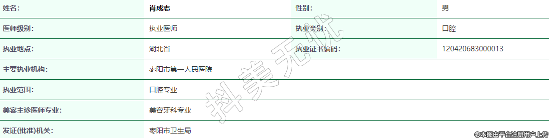 執(zhí)業(yè)范圍:口腔專(zhuān)業(yè)
