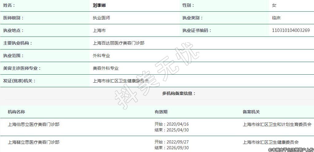 上海百達麗醫(yī)療美容執(zhí)業(yè)醫(yī)師