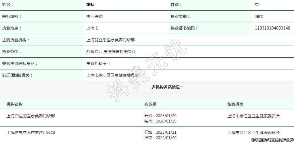上海百達(dá)麗醫(yī)療美容執(zhí)業(yè)醫(yī)師