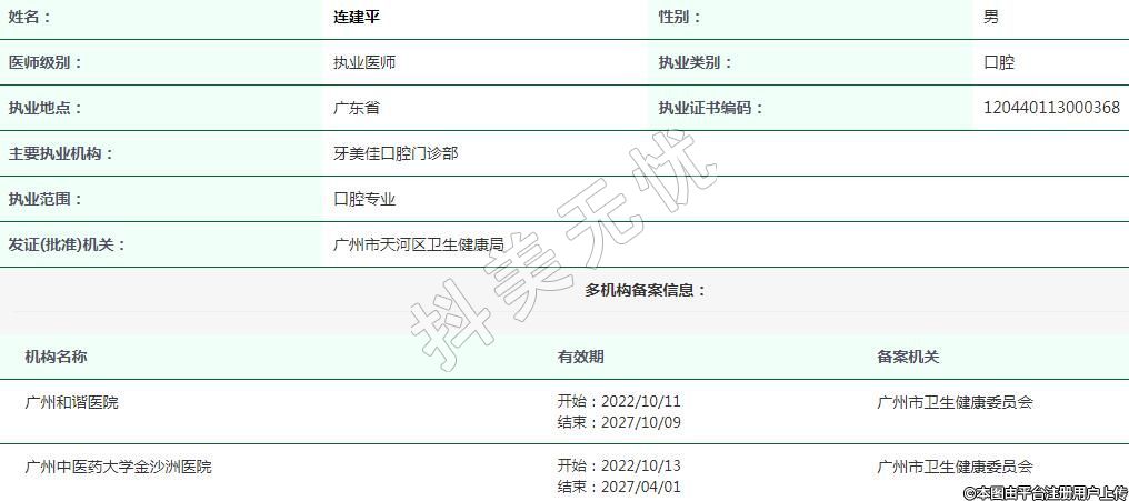 主要執(zhí)業(yè)機(jī)構(gòu):牙美佳口腔門診部