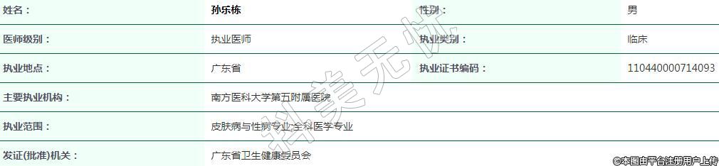 執(zhí)業(yè)范圍:皮膚病與性病專業(yè);全科醫(yī)學(xué)專業(yè)