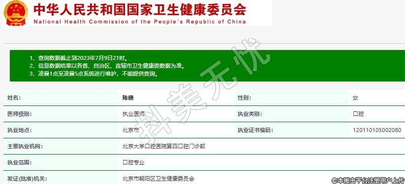 執(zhí)業(yè)范圍:口腔專(zhuān)業(yè)