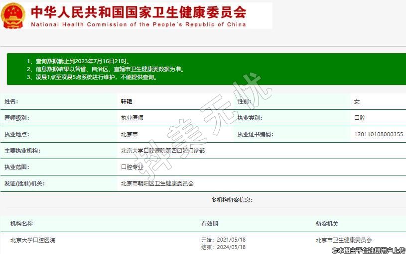主要執(zhí)業(yè)機(jī)構(gòu):北京大學(xué)口腔醫(yī)院第四口腔門(mén)診部
