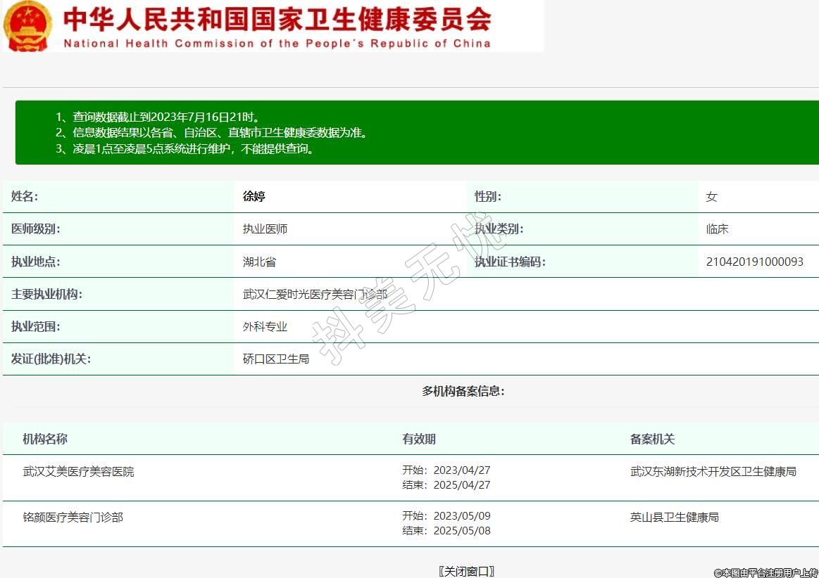 主要執(zhí)業(yè)機(jī)構(gòu):武漢仁愛(ài)時(shí)光醫(yī)療美容門(mén)診部