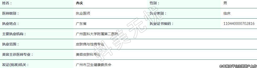 執(zhí)業(yè)范圍:皮膚病與性病專(zhuān)業(yè)