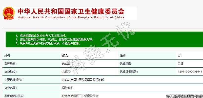 執(zhí)業(yè)范圍:口腔專(zhuān)業(yè)