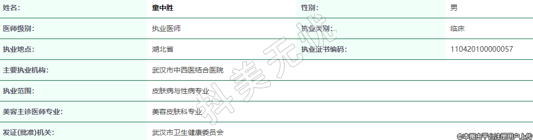 執(zhí)業(yè)范圍:皮膚病與性病專業(yè)