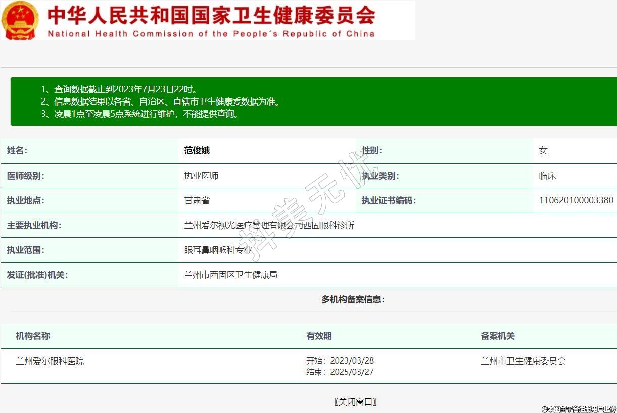 主要執(zhí)業(yè)機構(gòu):蘭州愛爾視光醫(yī)療管理有限公司西固眼科診所