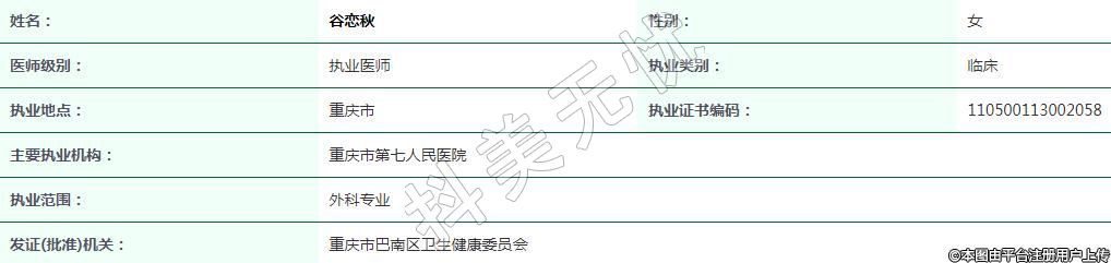 主要執(zhí)業(yè)機(jī)構(gòu):重慶市第七人民醫(yī)院