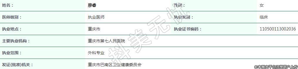 主要執(zhí)業(yè)機構(gòu):重慶市第七人民醫(yī)院