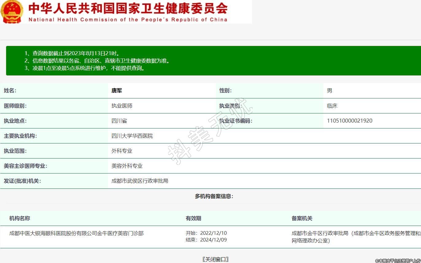 機構(gòu)名稱:成都中醫(yī)大銀海眼科醫(yī)院股份有限公司金牛醫(yī)療美容門診部