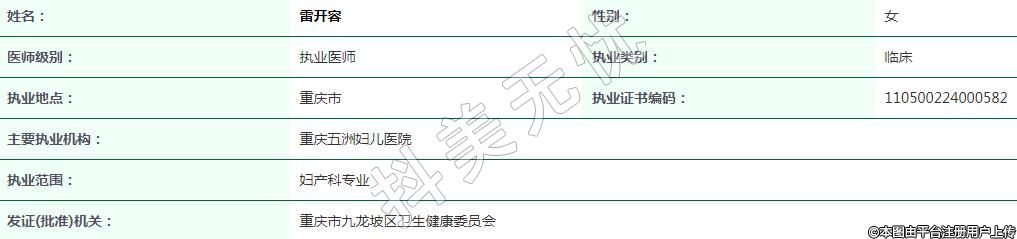 重慶五洲婦兒醫(yī)院醫(yī)療美容執(zhí)業(yè)醫(yī)師