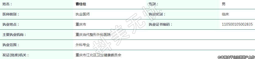 重慶當(dāng)代整形外科執(zhí)業(yè)醫(yī)師