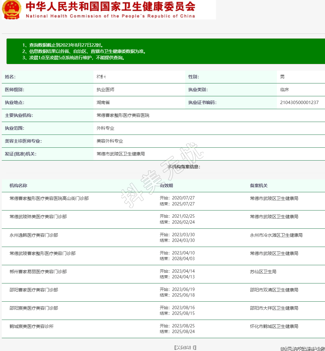 主要執(zhí)業(yè)機構(gòu):常德曹家整形醫(yī)療美容醫(yī)院