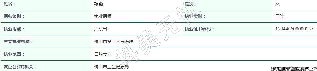 執(zhí)業(yè)范圍:口腔專(zhuān)業(yè)