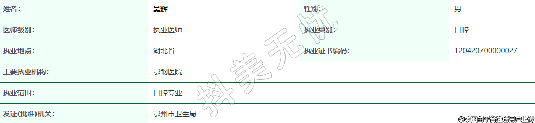 執(zhí)業(yè)范圍:口腔專業(yè)