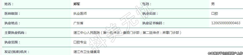 執(zhí)業(yè)范圍:口腔專業(yè)