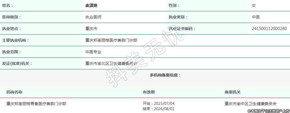 重慶鄭荃麗格青春醫(yī)療美容執(zhí)業(yè)醫(yī)師 -
