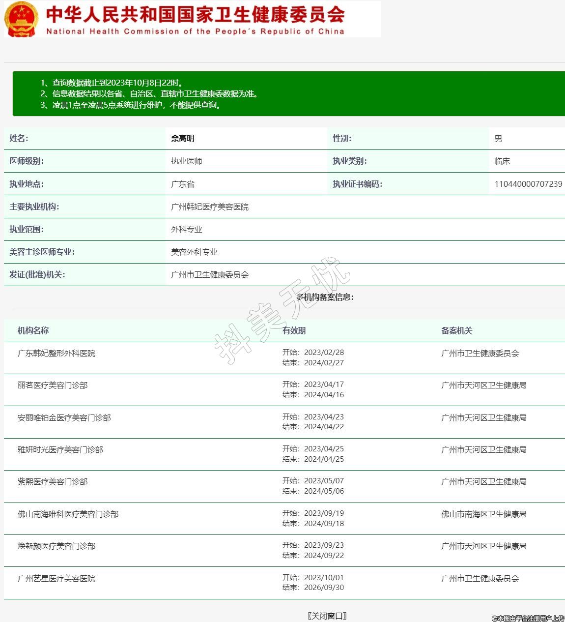 主要執(zhí)業(yè)機(jī)構(gòu):廣州韓妃醫(yī)療美容醫(yī)院