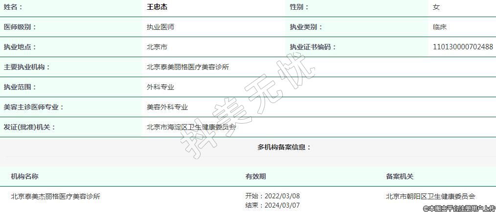 主要執(zhí)業(yè)機構:北京泰美麗格醫(yī)療美容診所