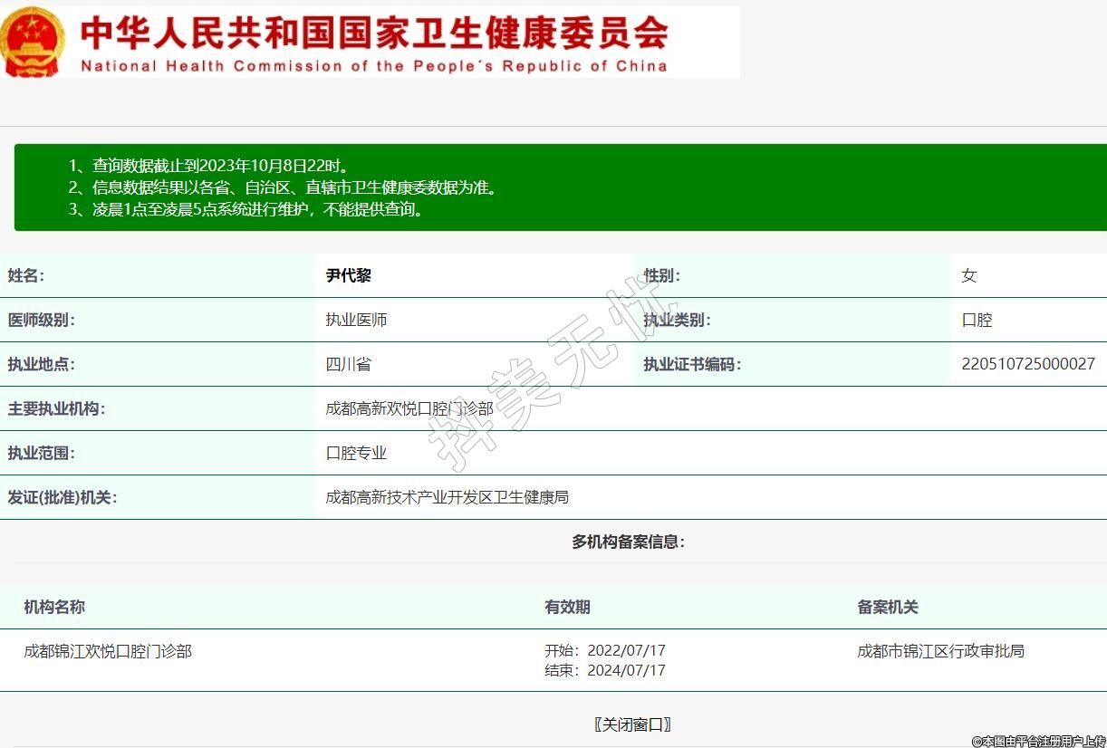 主要執(zhí)業(yè)機(jī)構(gòu):成都高新歡悅口腔門(mén)診部