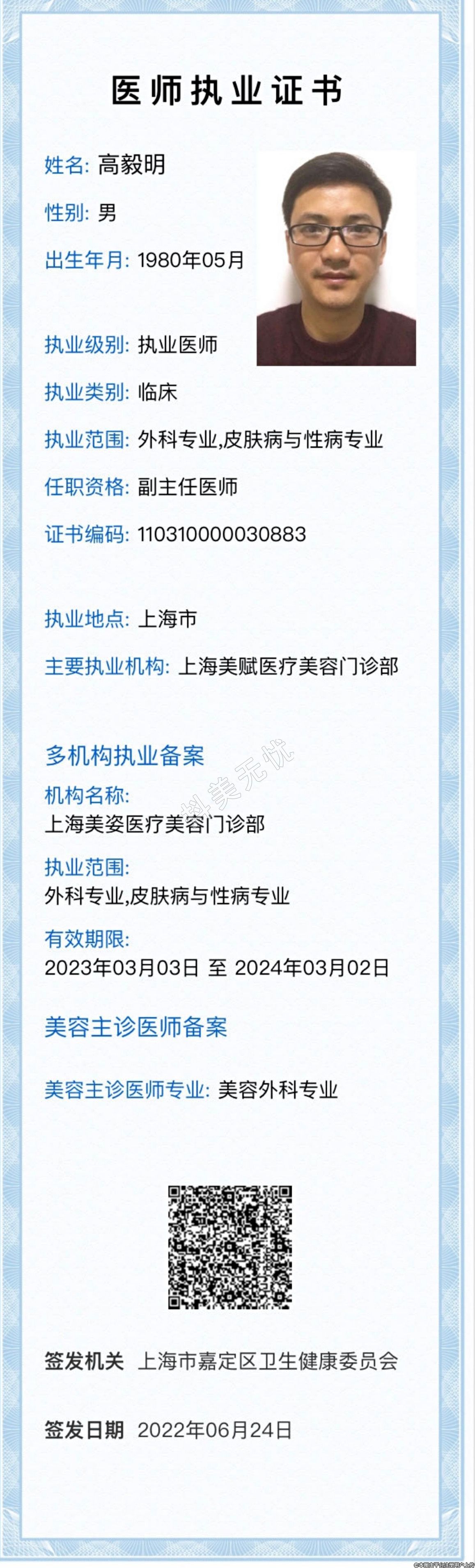主要執(zhí)業(yè)機構(gòu):上海美賦醫(yī)療美容門診部