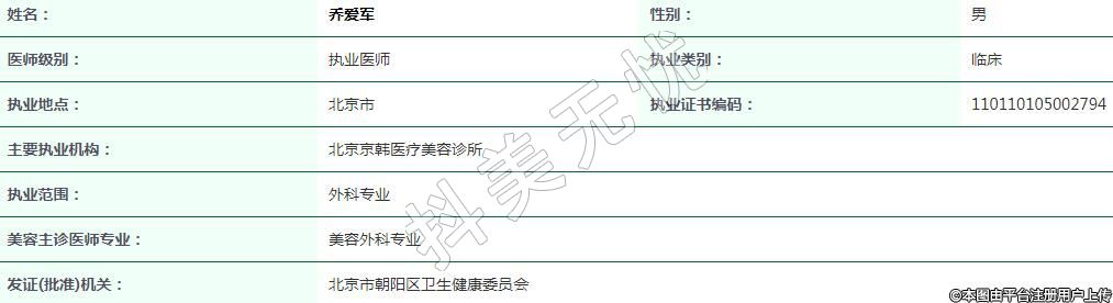 北京京韓醫(yī)療美容執(zhí)業(yè)醫(yī)生