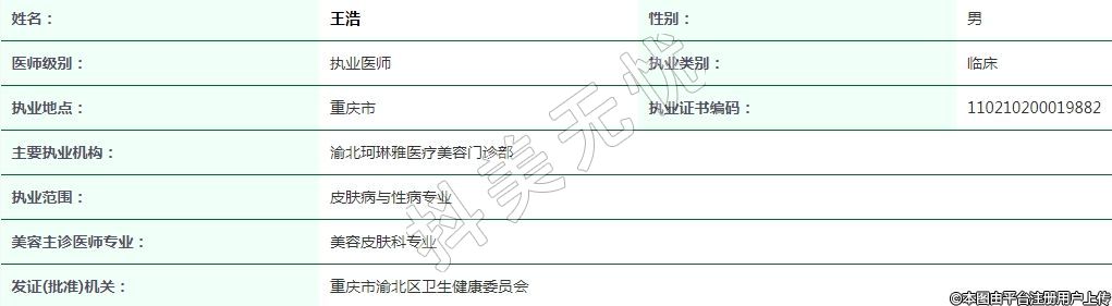渝北珂琳雅醫(yī)療美容執(zhí)業(yè)醫(yī)師