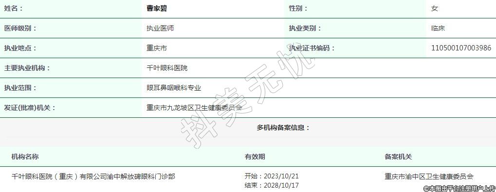 重慶千葉眼科執(zhí)業(yè)醫(yī)師