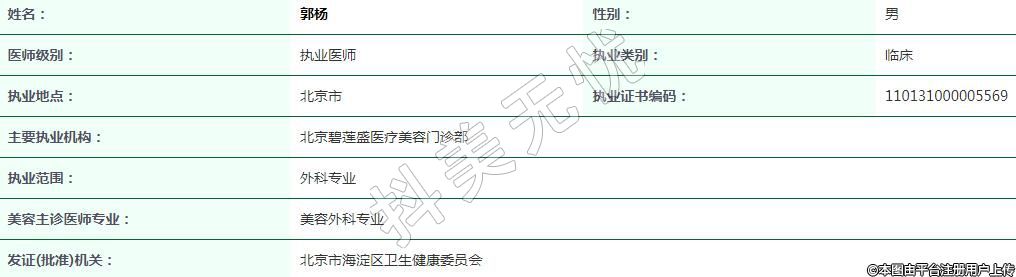 北京碧蓮盛醫(yī)療美容執(zhí)業(yè)醫(yī)生