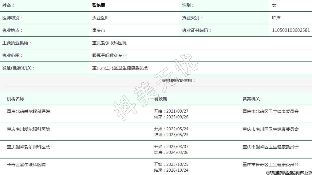 重慶愛爾眼科執(zhí)業(yè)醫(yī)師
