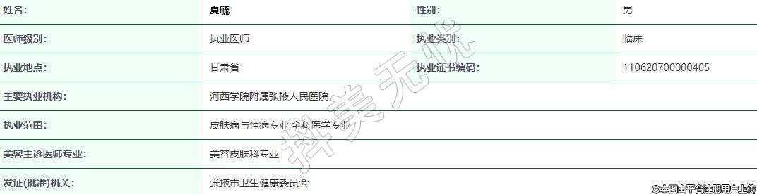 執(zhí)業(yè)范圍:皮膚病與性病專業(yè);全科醫(yī)學(xué)專業(yè)