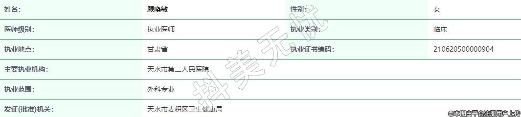 主要執(zhí)業(yè)機(jī)構(gòu):天水市第二人民醫(yī)院