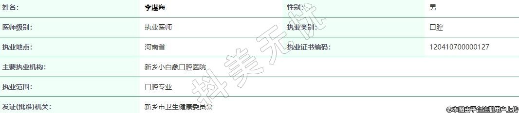 執(zhí)業(yè)范圍:口腔專業(yè)