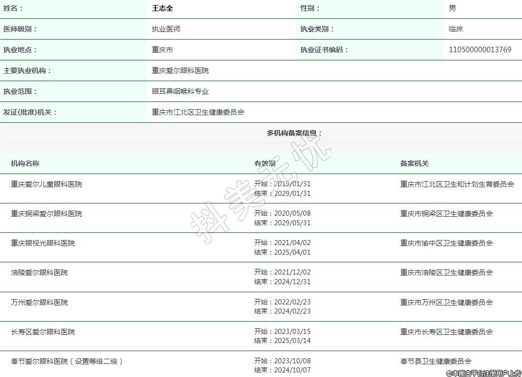 重慶愛爾眼科執(zhí)業(yè)醫(yī)師