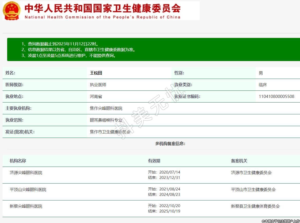 主要執(zhí)業(yè)機構(gòu):焦作尖峰眼科醫(yī)院