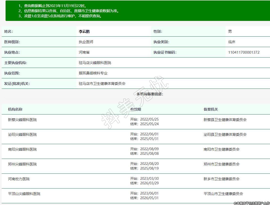 主要執(zhí)業(yè)機構:駐馬店尖峰眼科醫(yī)院