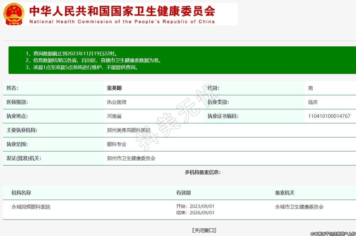 主要執(zhí)業(yè)機(jī)構(gòu):鄭州奧弗克眼科醫(yī)院